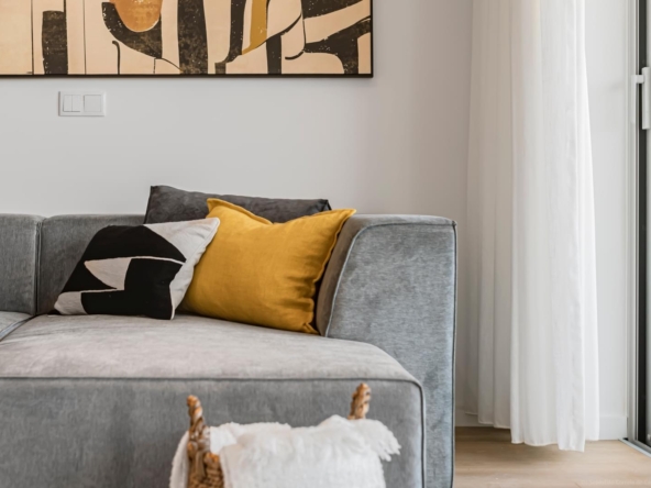 Inserted between green areas and all the services you need. With space for your home office, the large windows invite the light to come in, to live in full. The building is light and delicate, with modern lines and tones linked to the landscape. The flats have the maximum optimization of space, reducing the circulation areas, but maintaining the differentiation between day and night zones and creating plenty of storage.
