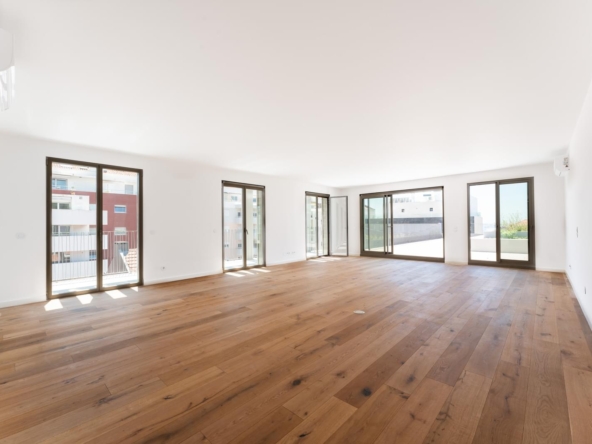 Apartamento T4 com 189 m2 de área interior e terraço de 220m2 virado a Sul com piscina privativa.