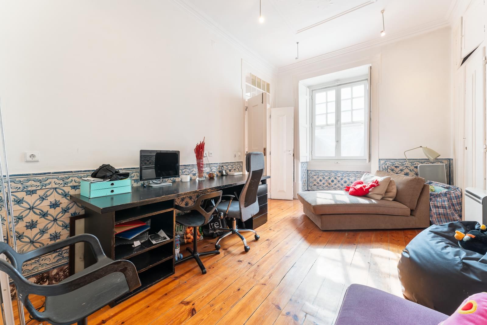 It is placed in a building of Pombaline architecture and without elevator, on a second floor, very easy to access via a wide staircase, and with the walls coated with tiled panelling of traditional Portuguese tiles.