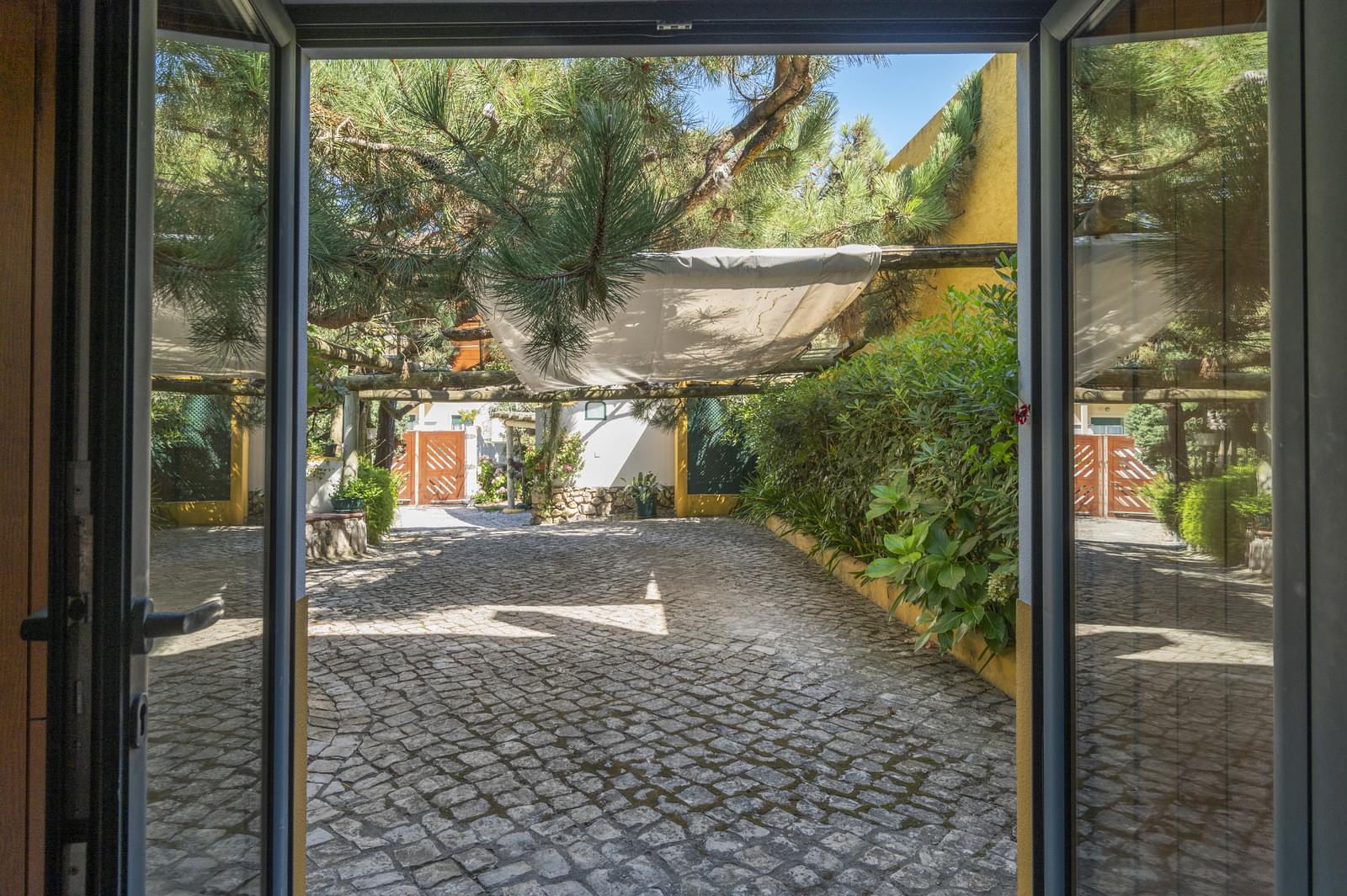 O terreno com 1.265m2 tem o jardim a Leste e um solário/piscina a Oeste. Quatro suítes, sete WC (dois no exterior), duas salas com lareira, lavandaria, escritório, aquecimento central e música/som em todas as divisões, constituem a essência do interior da casa (505m2 de área bruta de construção).