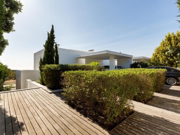 Localizada num ambiente privilegiado com vista ampla e desafogada em direção à praia do Meco, esta propriedade combina um design contemporâneo com uma infinidade de comodidades.