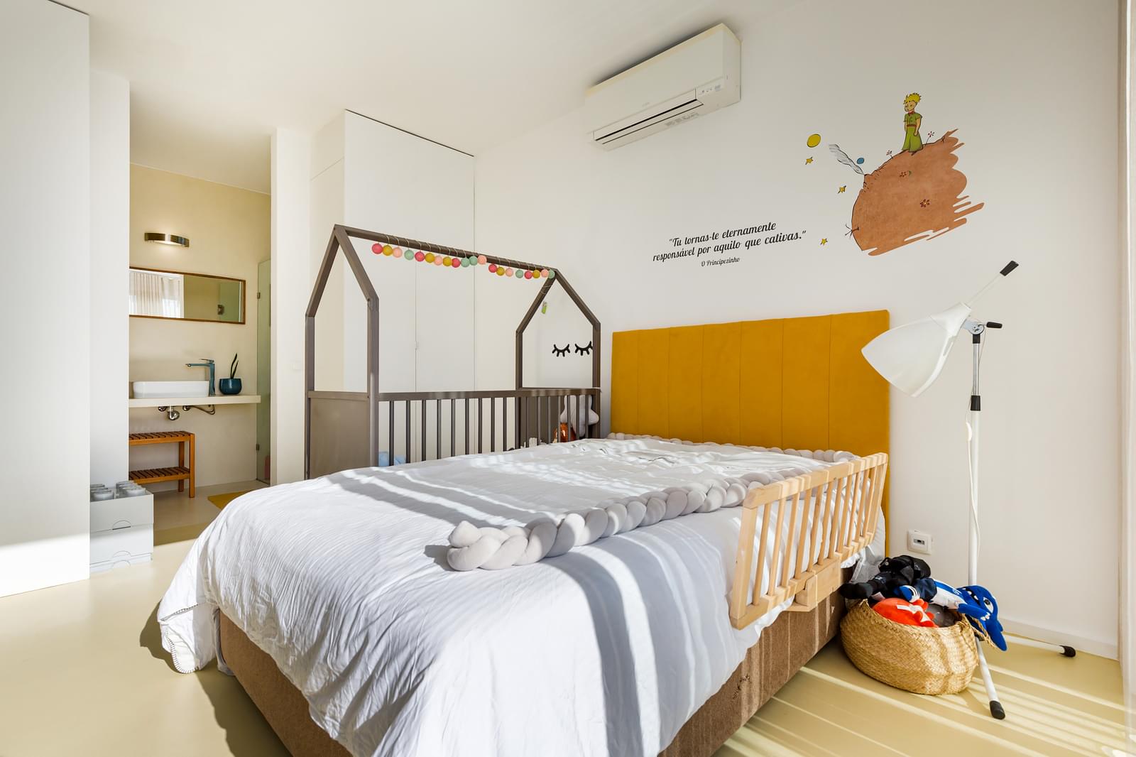 Ao entrar nesta residência, tem um hall de acesso à área privativa, como também uma escadaria de acesso ao piso inferior, onde se encontra a Sala e Cozinha. Encontra um pé direito alto que cria, de imediato, uma sensação de grandeza e permite uma abundância de luz natural.