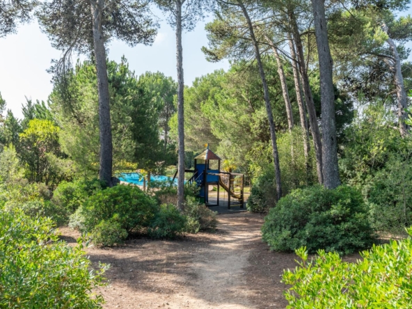 The condominium offers an excellent quality of life with more than 5,000 m² of green spaces, providing a peaceful and relaxing outdoor environment. Residents can enjoy a large swimming pool (8m x 18m), ideal for leisure moments, surrounded by a well-maintained garden.