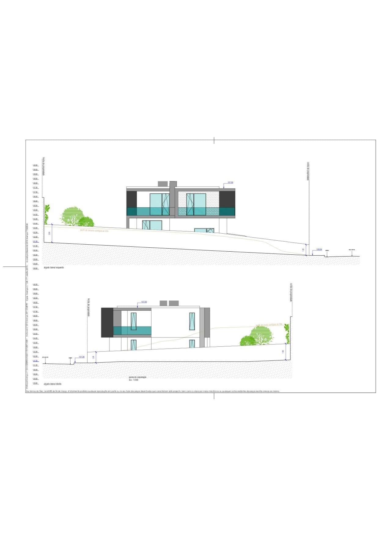 This villa is composed by three floors, and the basement comprises a 76.5 sqm garage, a 13.70 sqm laundry area, a 16.45 sqm engine area and a social bathroom. In the basement the placement of an elevator is approved, from the basement to the top floor. However, it can be replaced by a freight elevator with access only to the ground floor.