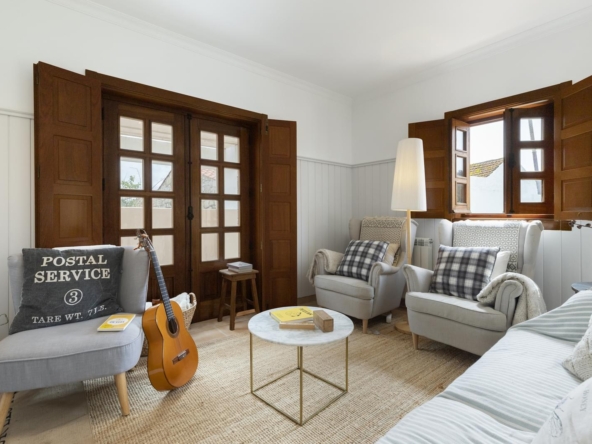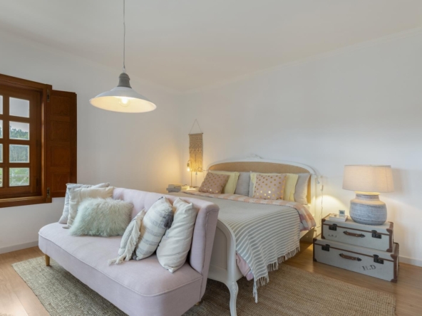 Inserted in the beautiful Eco Park of Pia do Urso arises this villa, with 260 sqm, very well distributed by two floors, totally refurbished with the highest quality materials, where no detail was left to chance. The ground floor comprises a large dimensioned living room and dining room where you can enjoy a meal and moments of leisure contemplating all the nature that surrounds the house. The kitchen, with very generous areas, is connected in perfect harmony to the living room. Downstairs there is still a full private bathroom, a fantastic bedroom with plenty of light and a laundry area.