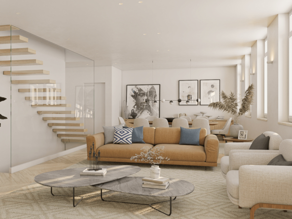 Com 312 m2 de área bruta privativa, este luxuoso imóvel com acabamentos de alta qualidade conta com elevador e garagem e oferece, ainda, vários espaços exteriores: um pequeno jardim de 16m2, terraço de 24m2 e varandas com vista cidade no último piso.