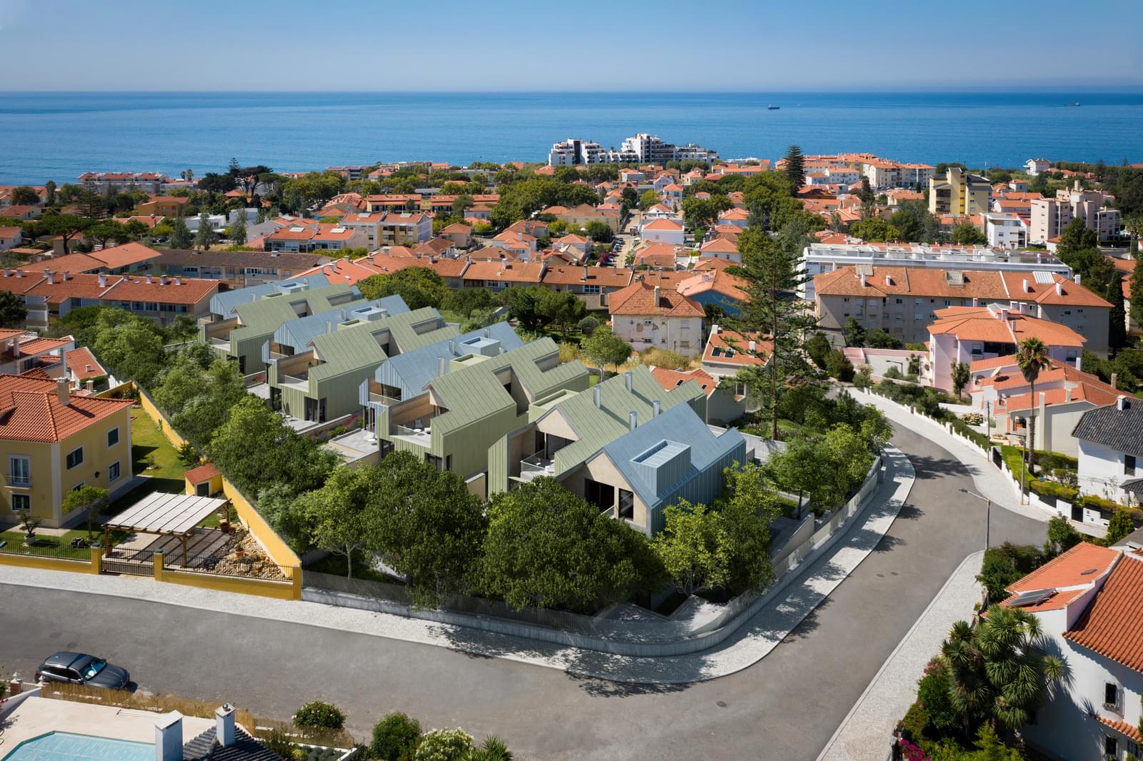 Pensado pela ARX Arquitetos como um condomínio privado cujas linhas de tom contemporâneo se conjugam com a harmonia dos exteriores, Blue Villas emancipa igualmente todo o horizonte que se revela. Um horizonte que é feito tanto do oceano como da Linha de Cascais que o acompanha.