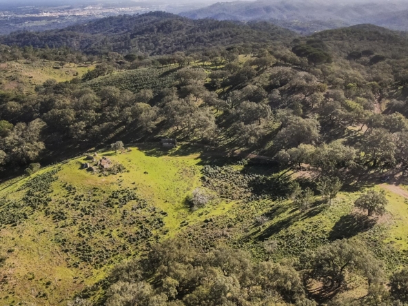 Located in Serra de Grândola, in the countryside, with a cork oak forest. It has different slopes and at the highest point, where the ruin is, it offers a fabulous view of the mountain that extends to the sea.